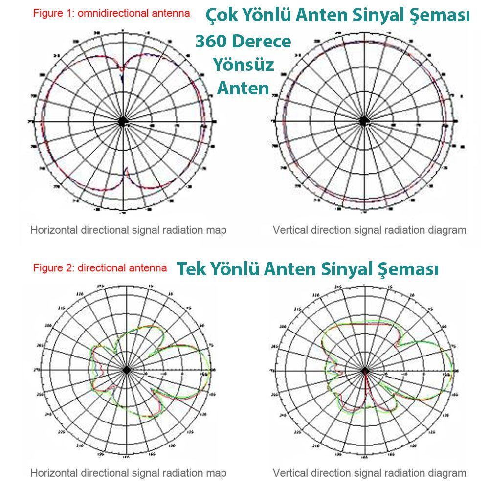 360ºc Çok yönlü veya Dikey Yönlü Konumlandırarak kullanılabilir. (Bütün Yönlere Sinyal Alır / Verir).