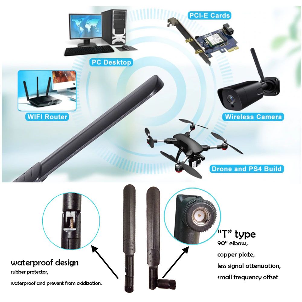 Wi-Fi, Drone, FPV, Wireless (Kısaca 2.4 GHz ve 5.8 GHz Frekanslarıyla Çalışan Bütün RP - SMA Dişi (RP - SMA FEMALE Plug) Çıkışlı Cihazlarda Kullanılabilir).