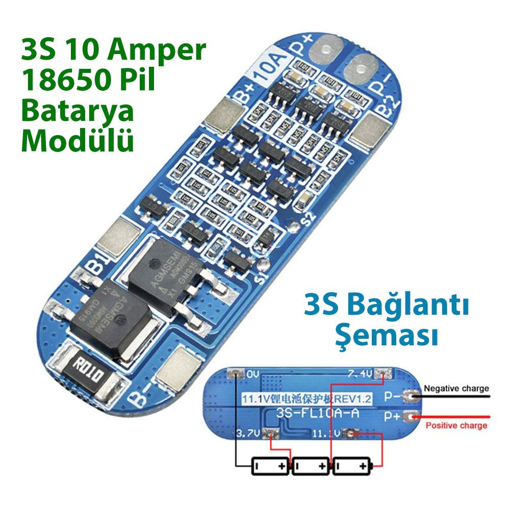 1 Adet 3S 10A Pil Batarya Modülü.