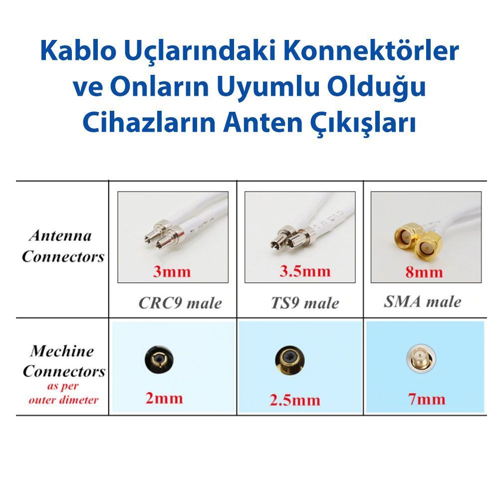 HUAWEİ, ZTE, VODAFONE vb. TS - 9 / SMA MALE / CRC - 9 Gibi Anten Çıkışına Sahip Cihazlara Takılabilir.