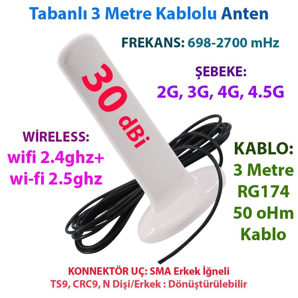 Huawei Wi-Fi SMA Anten 30 dBi, Huawei SMA Anten 30 dBi, Huawei B618S - 22D Anteni 30 dBi, Huawei SMA / TS - 9 / CRC - 9 Anten, Huawei 2G / 3G / 4G / 4G Lte Anten, SMA / TS - 9 / CRC - 9 Uçlu Anten, 30 dBi Anten