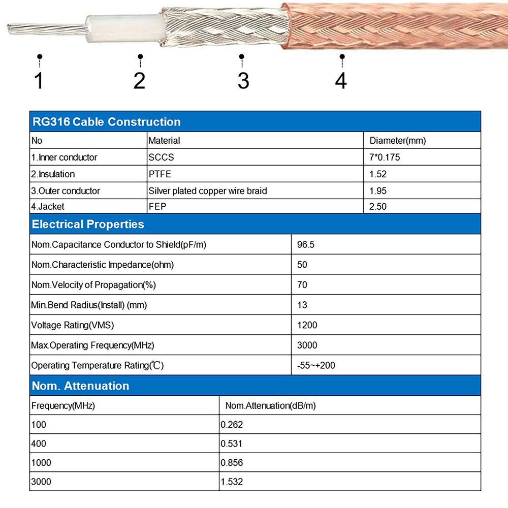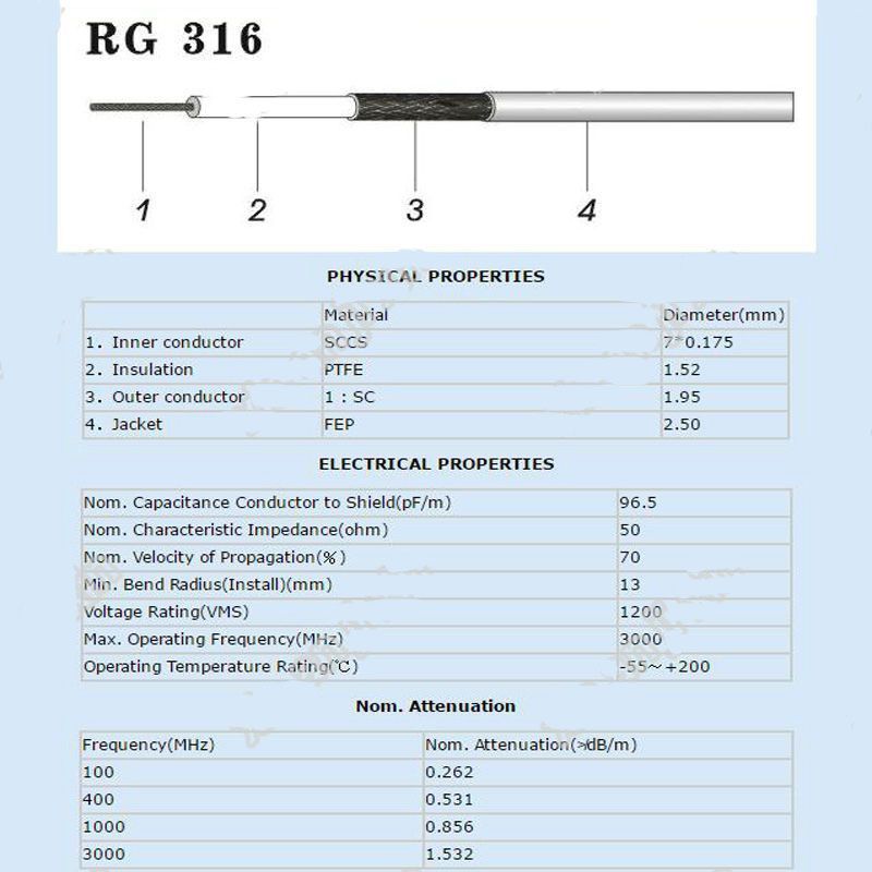RG - 316, MIL-DTL-17 Spesifikasyonlarına Uygun Yüksek Performanslı Bir Koaksiyel Kablodur. Koaksiyel RG - 316 ile İlişkili M 17 Kısmı M 17 / 113 - RG - 316 'dir.