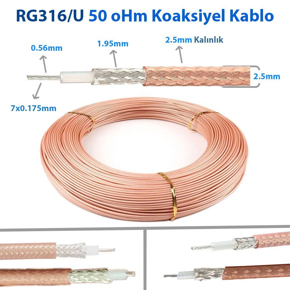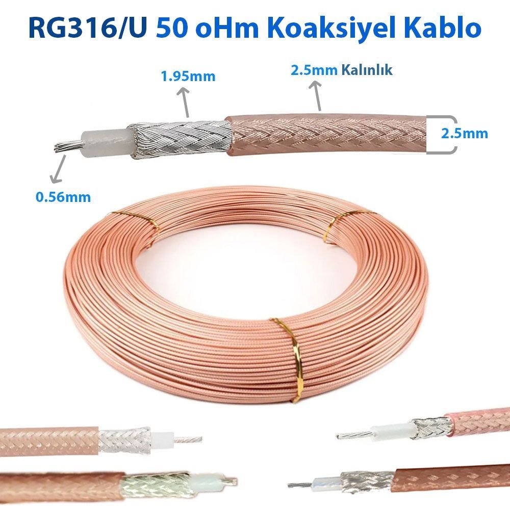 RG - 316 Koaksiyel Kablosu, Yüksek Sıcaklık Ortamlarında İyi Performans ve Stabilite Gerektiren Uygulamalar veya Yüksek Faz Stabilitesi Gerektiren Uygulamalar veya Zorlu Ortamlarda veya Minimum Kurulum Alanı Olan Uygulamalar İçin İyi Bir Seçimdir.