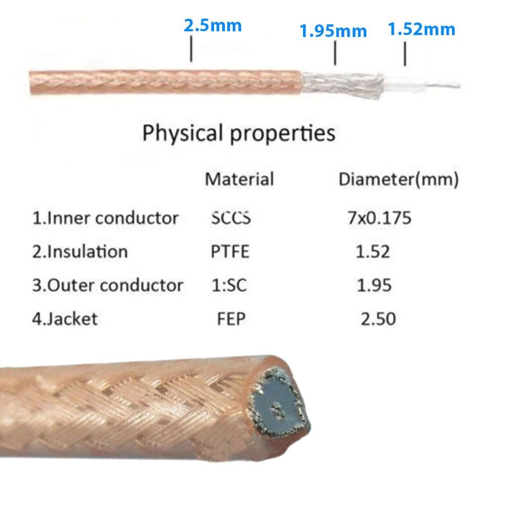 RG - 316/U 50 oHm Koaksiyel Kablo Düşük Kayıp Yüksek Mukavemetli Kablo.